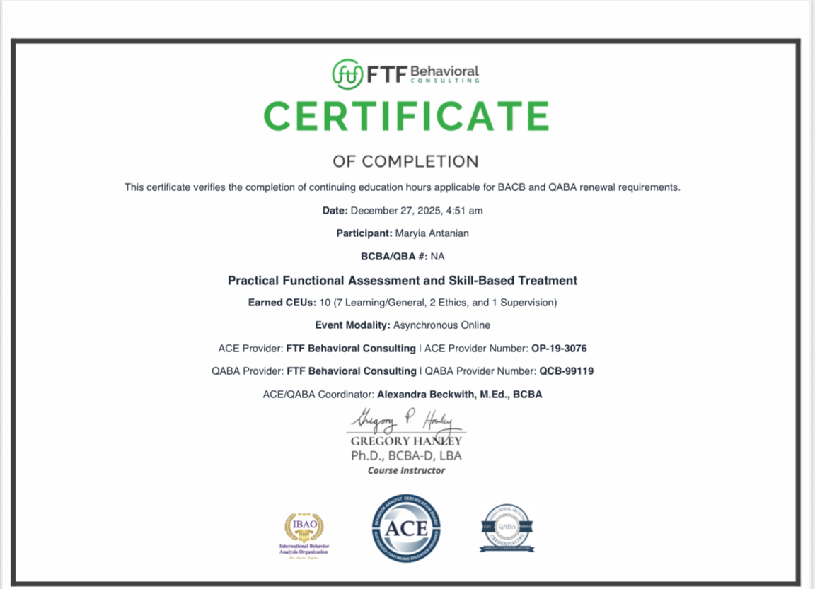 «Применение экспериментального анализа для определения функции поведения»