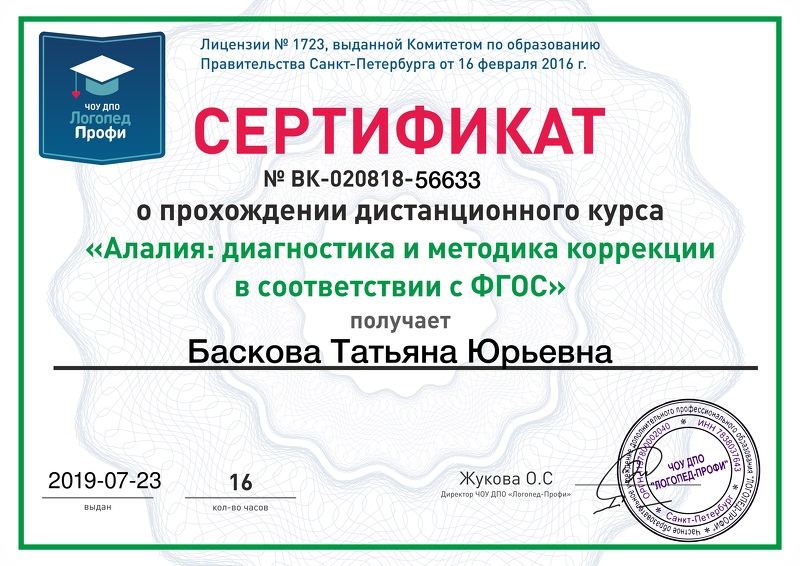 Повышение квалификации 16 часов