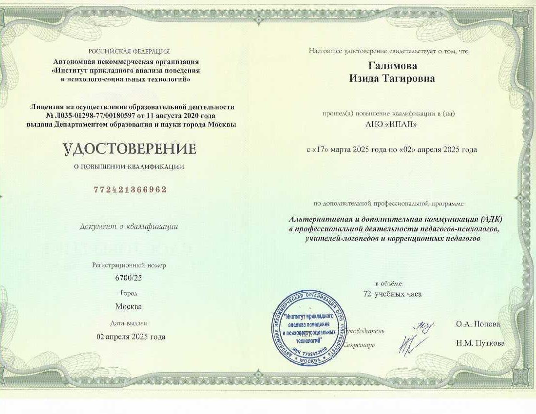 Высшее (Учитель- дефектолог)Дополнительное образование в сфере АВА