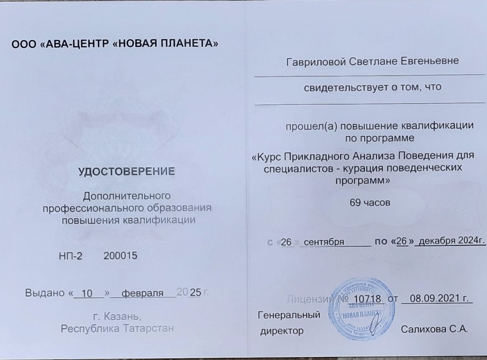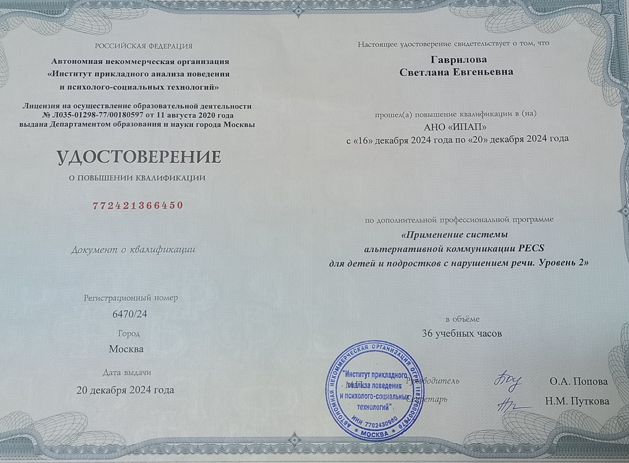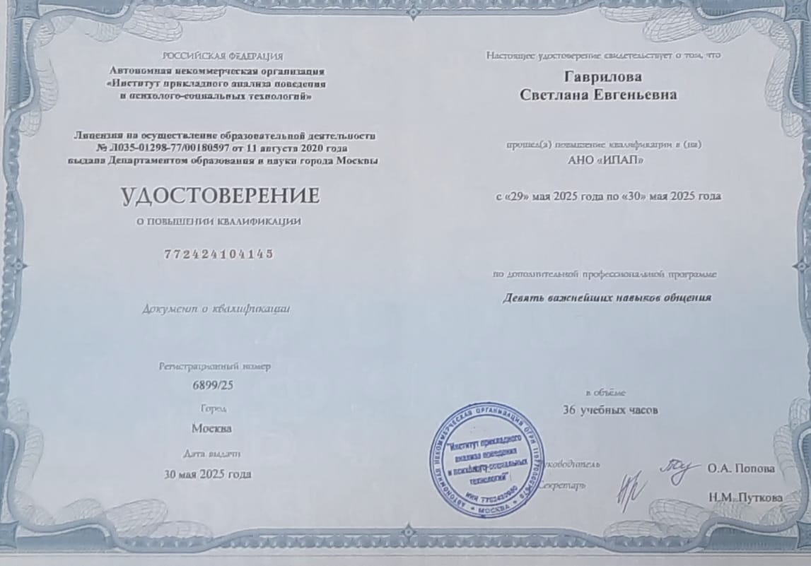 Дополнительное проф образование повышение квалификации "Курс Прикладного Анализа Поведения для специалистов - курация поведенческих программ".