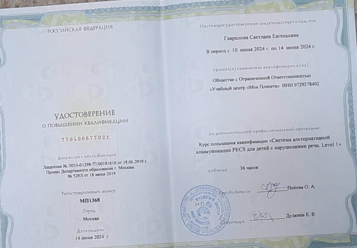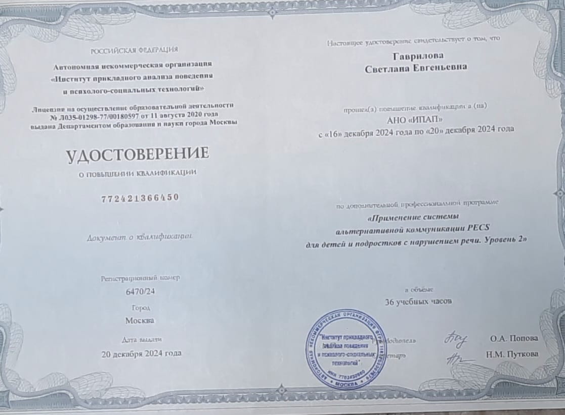 Курс повышения квалификации, "Система альтернативной коммуникации PECS для детей с нарушением речи, Level 1Курс повышения квалификации, "Система альтернативной коммуникации PECS для детей с нарушением речи, Уровень 2
