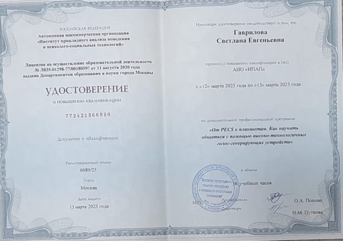 Курс повышения квалификации, От PECS к планшетам. Как научить общаться с помощью высоко-технологических голос-генерирующих устройств"