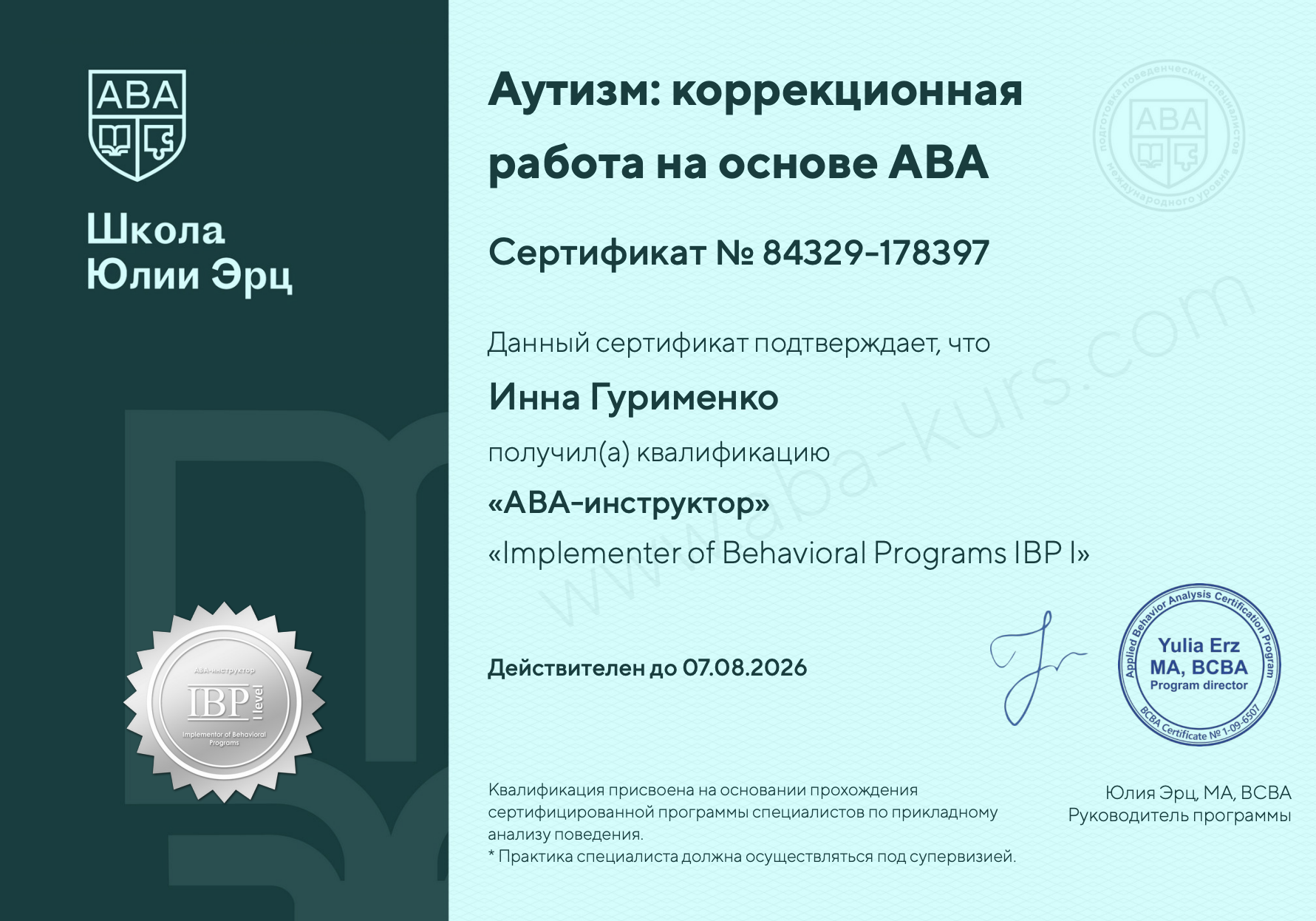 Гурименко Инна – сертифицированный специалист | ABA-школа Юлии Эрц