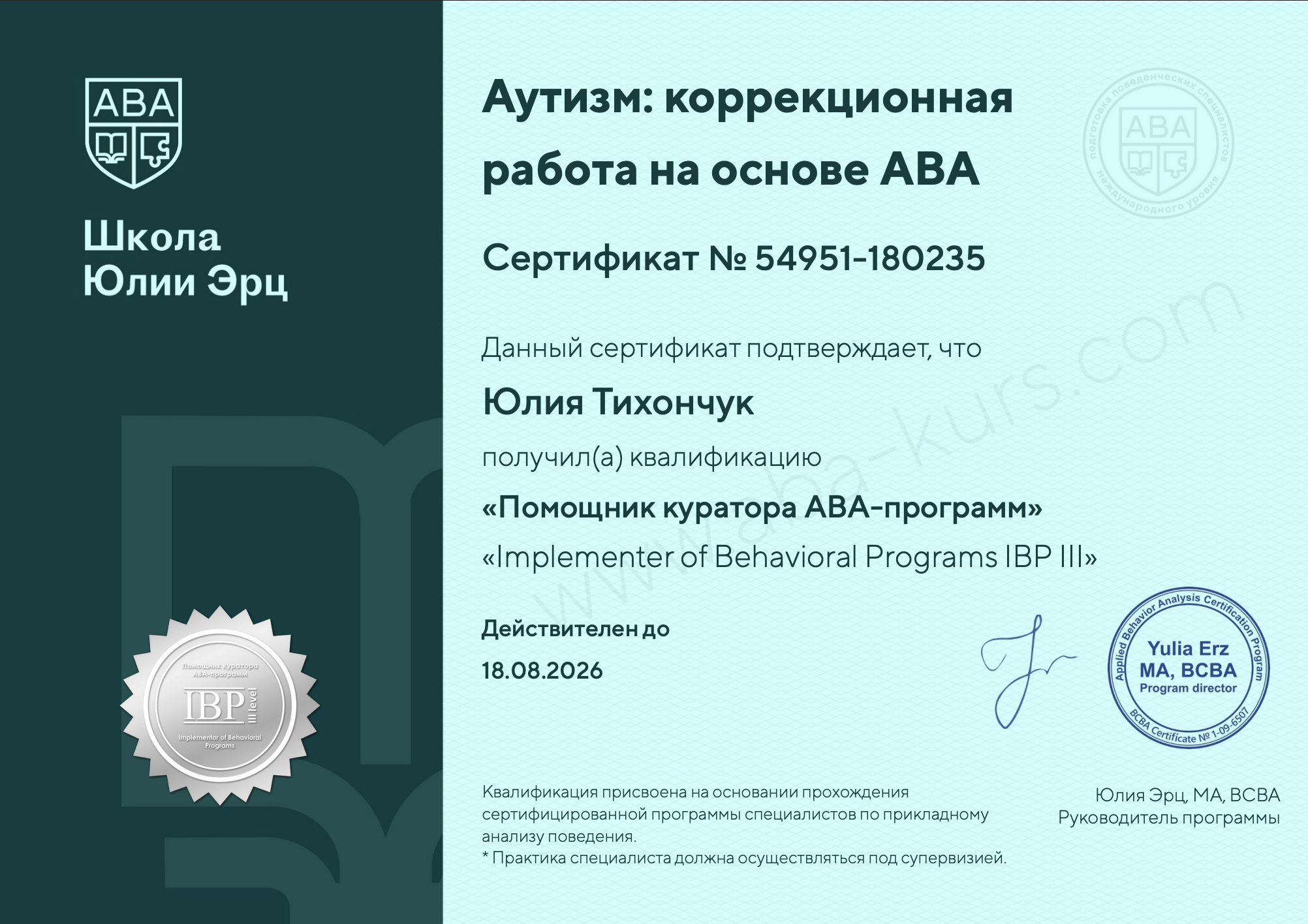 Компетенция данного уровня позволяет специалисту ТОЛЬКО реализовать поведенческие программы под руководством куратора или супервизора.