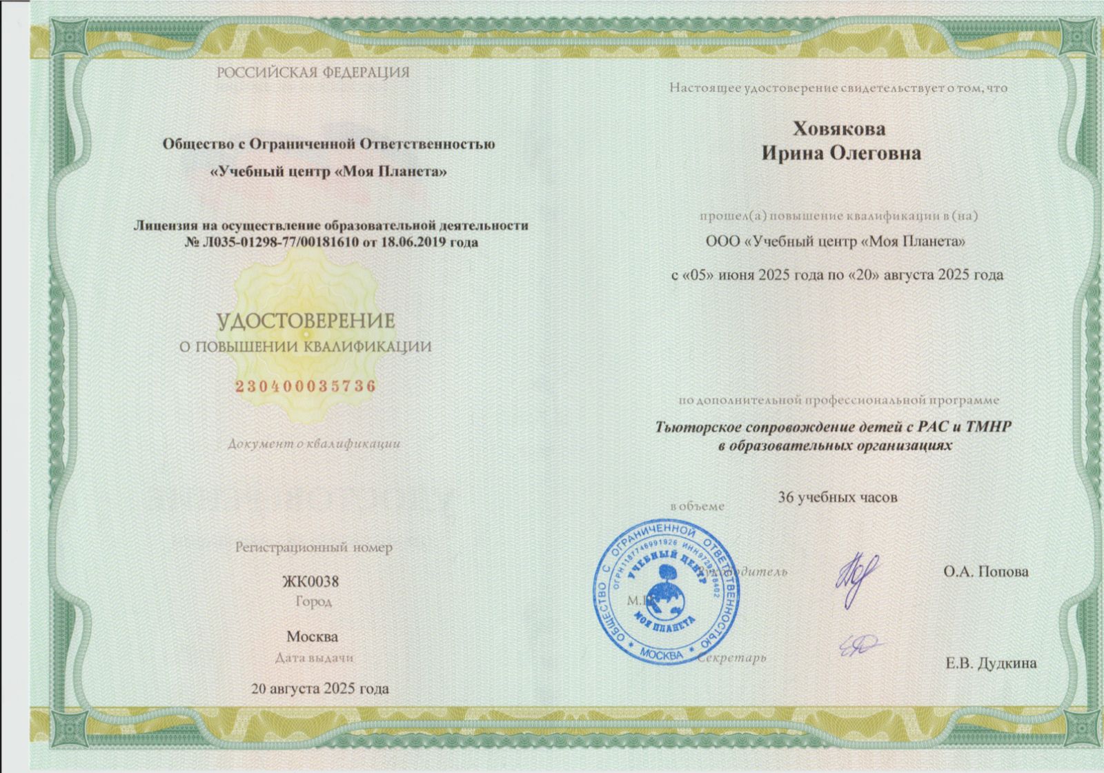 Международная Академия Психологических наук - Сенсорная интеграция -2025 г