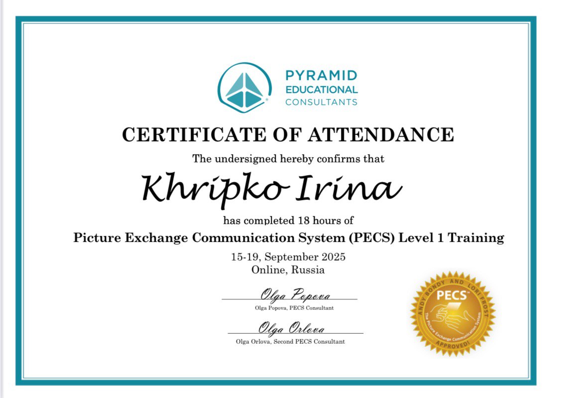 Применение системы альтернативной коммуникации PECS для детей и подростков с нарушениями речи. Уровень 1.2 модуля сертификационной программы обучения.
