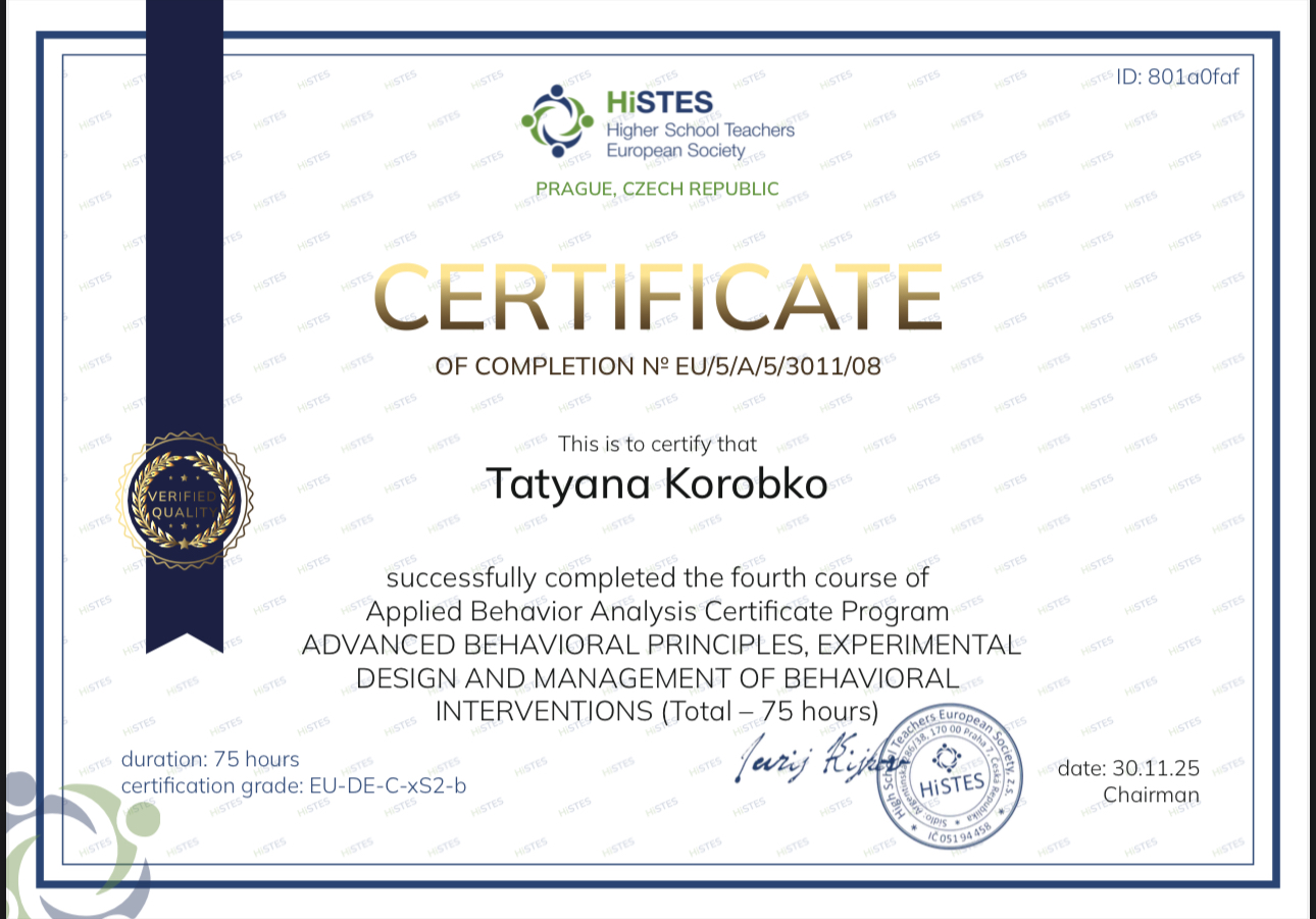 Компетенция данного уровня позволяет специалисту ТОЛЬКО реализовать поведенческие программы под руководством куратора или супервизора.