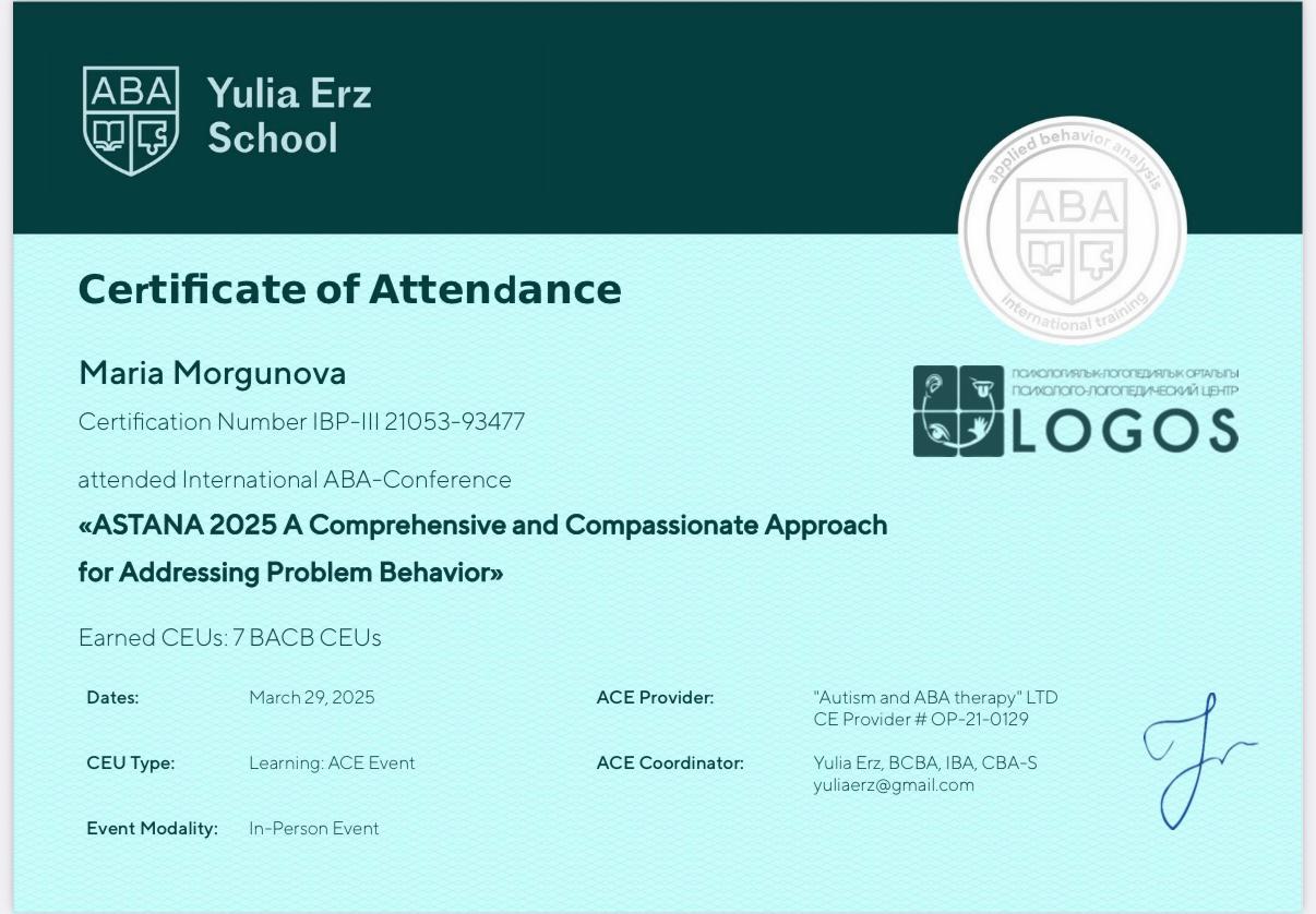 Моргунова Мария – сертифицированный специалист | ABA-школа Юлии Эрц