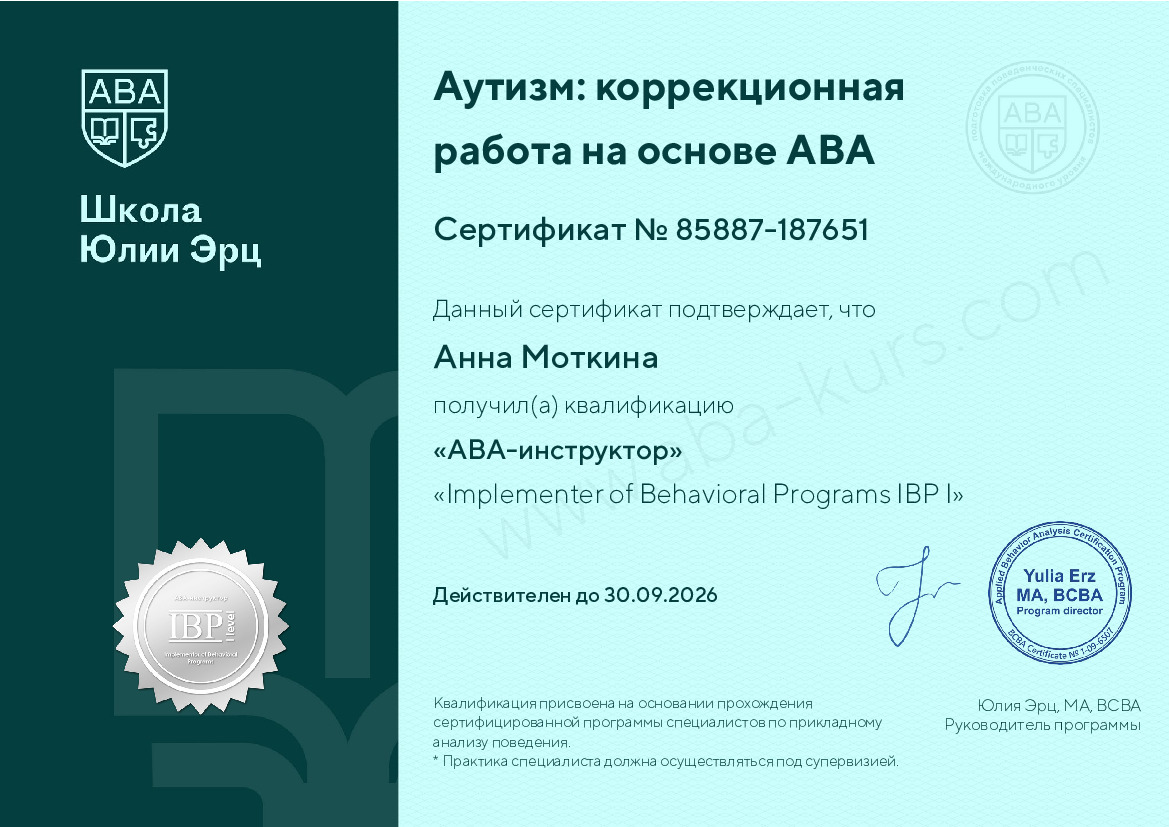ABA-инструктор (Implementer Of Behavioral Programs - IBP I Level)
