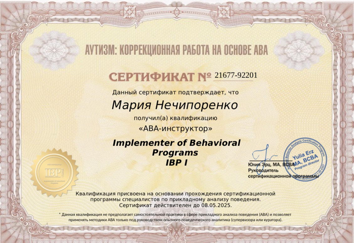 Компетенция данного уровня позволяет специалисту ТОЛЬКО реализовать поведенческие программы под руководством куратора или супервизора.