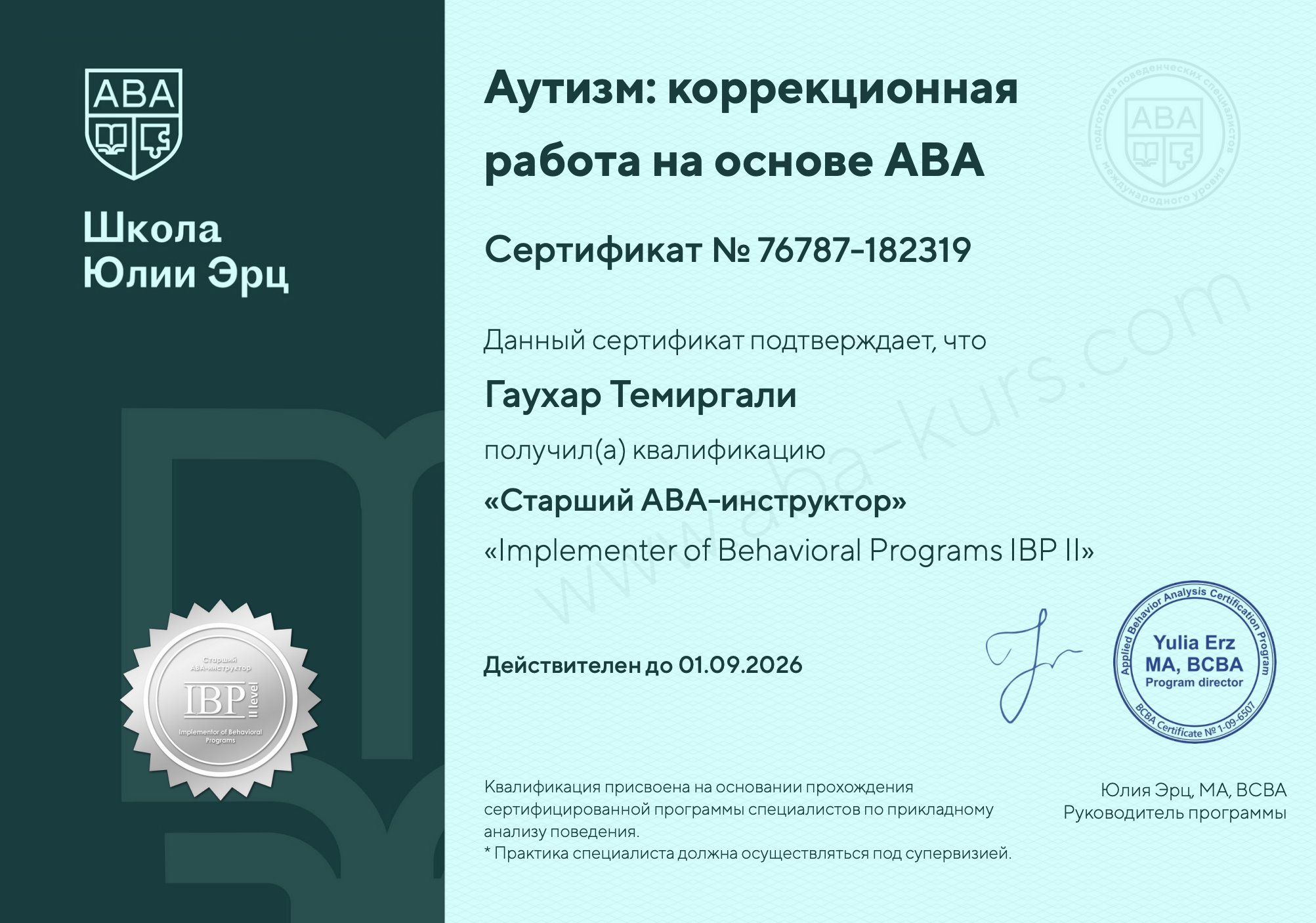 Темиргали Гаухар – сертифицированный специалист | ABA-школа Юлии Эрц