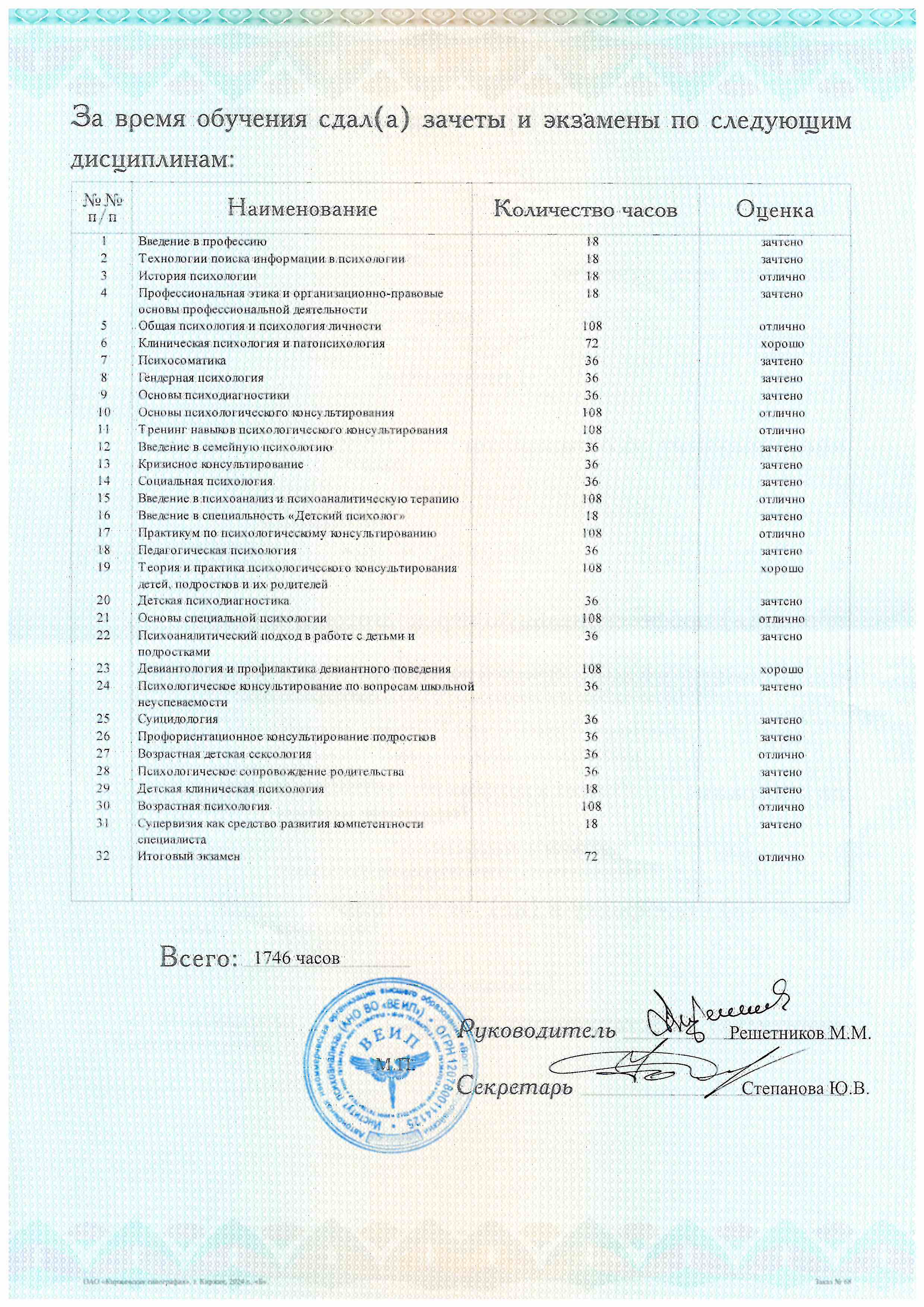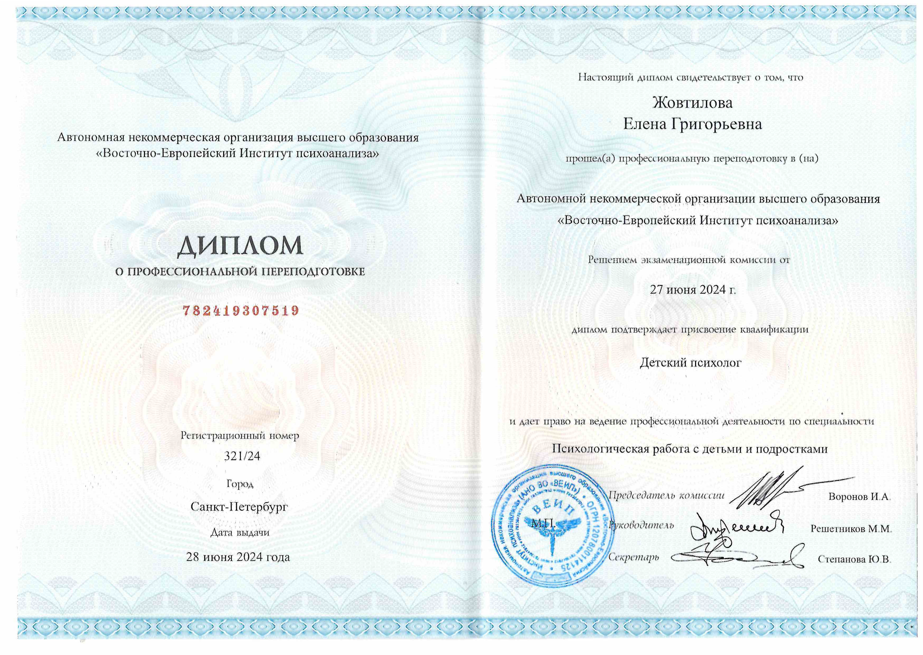 АНО ВО «Восточно-Европейский Институт психоанализа», детский психолог – программа профессиональной переподготовки на базе высшего образования (1746 часов)